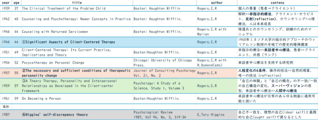 この後に、「A Theory Therapy, Personality and Interpersonal Relationships as Developed in the Client-center Framework(1959)」で、不一致・一致の構造やスーパービジョンなど詳しい報告があります。