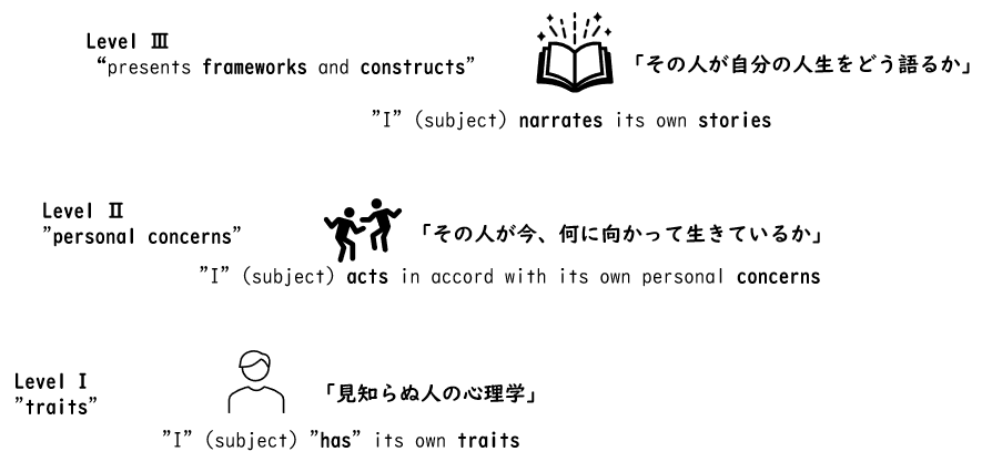 Abstractでは、この自己心理の枠組みを個人の性格の三つのレベル(Level Ⅰ,Ⅱ,Ⅲ)で説明します。